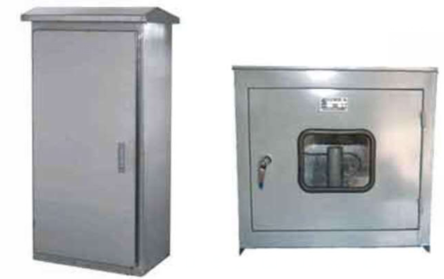 2、箱體分(fèn)上箱體、下(xià)箱體(為斜麵式吻合,吻合麵(miàn)上下端部箱體為弧型)。上下箱體用(yòng)不(bú)鏽鋼合葉連接,由橡塑條密封,下(xià)端安(ān)裝(zhuāng)不鏽鋼吊扣以壓緊。前開門(mén)帶觀察窗,有(yǒu)傾斜式防雨頂蓋,門與箱體之間采用(yòng)防濺結構,能防雨防塵,適與室(shì)內外安裝;