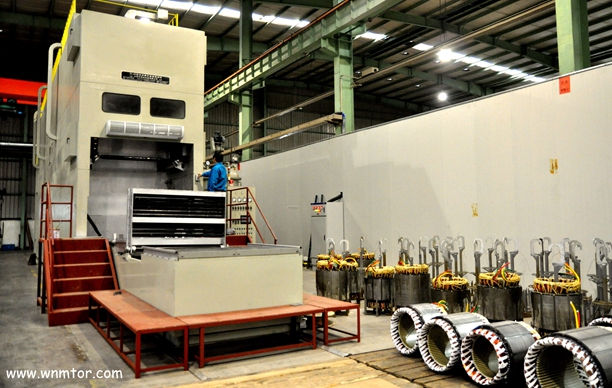 91麻豆国产福利品精電機控股威能電機公司(sī)自動真空連續浸漆機正式投入使(shǐ)用(yòng),該設備主要用於中心高H315-355電機有繞組定子的絕緣處理。