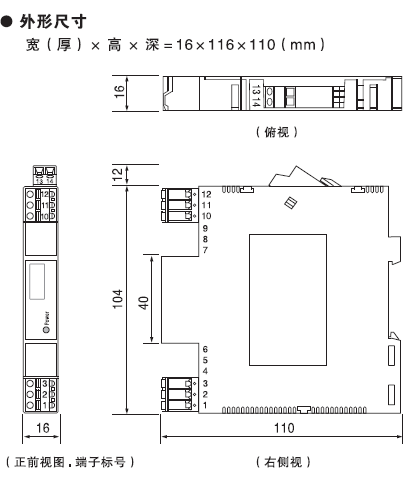 6、結構及(jí)外形尺寸: 結構(gòu):卡裝式(shì)模塊化表芯ABS材質機殼拔插式端子 外形尺寸:W16×H116×D110(mm),整機重量:約110g